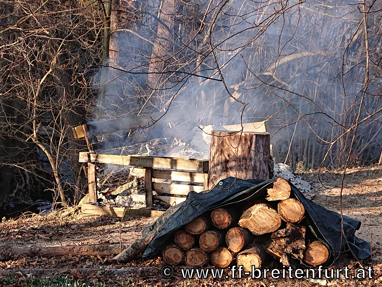 Brandgut mittels Feuerhaken aufgelockert