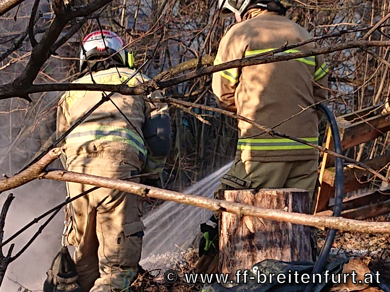Den Brand mit der C-Schnellangriffseinrichtung gelöscht