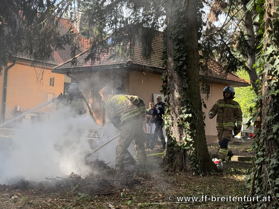 Am Dienstag wurde die Freiwillige Feuerwehr Breitenfurt um 10:09 Uhr zu einem Brandeinsatz alarmiert. Aus bisher unbekannter Ursache geriet ein Haufen Schnittgut in Brand. Bereits auf der Anfahrt war eine deutliche Rauchsäule sichtbar.