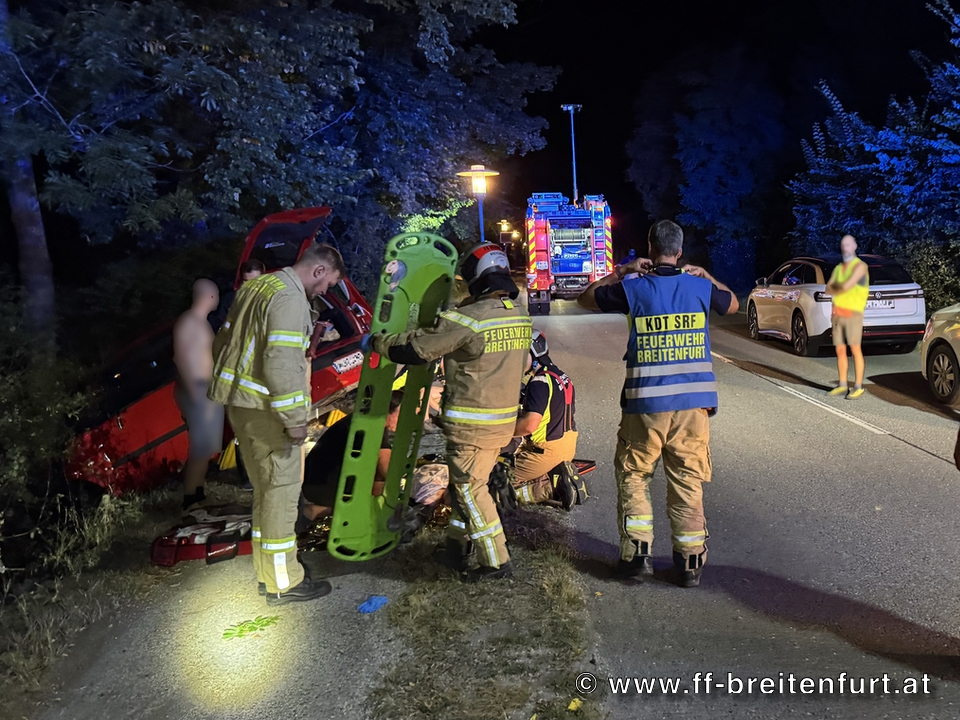 Aus unbekannter Ursache kam der Lenker eines PKW von der Fahrbahn ab und kam im Straßengraben zum Stillstand.Im Fahrzeug befanden sich keine Personen.Die Rettung war bereits vor Ort und versorgte die verletzte Person.