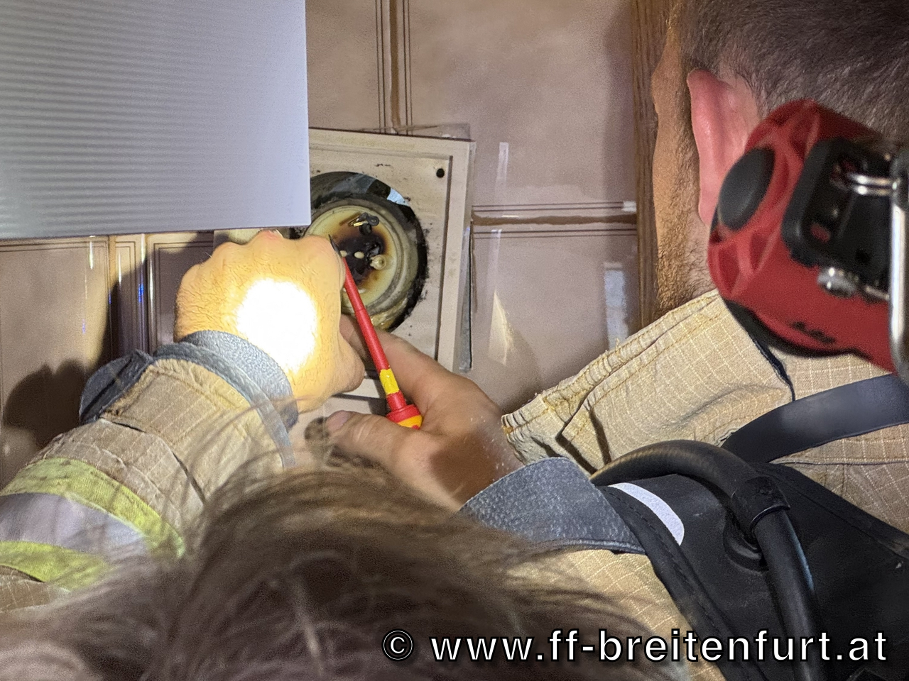 Bei unserem Eintreffen war ein leichter Brandgeruch wahrnehmbar. Im Zuge der Erkundung konnte festgestellt werden, dass es sich um den Abluftventilator im Badezimmer handelte.