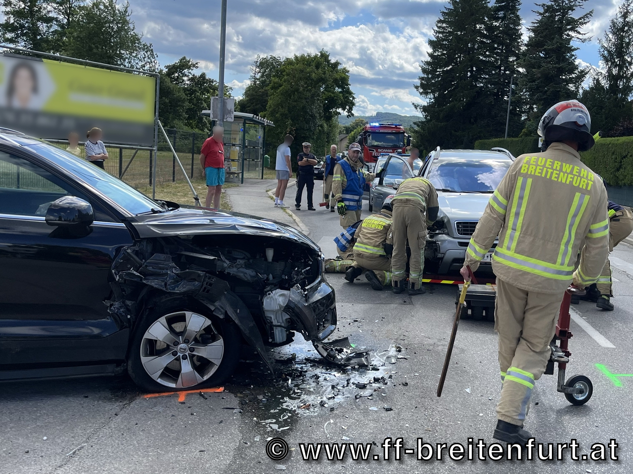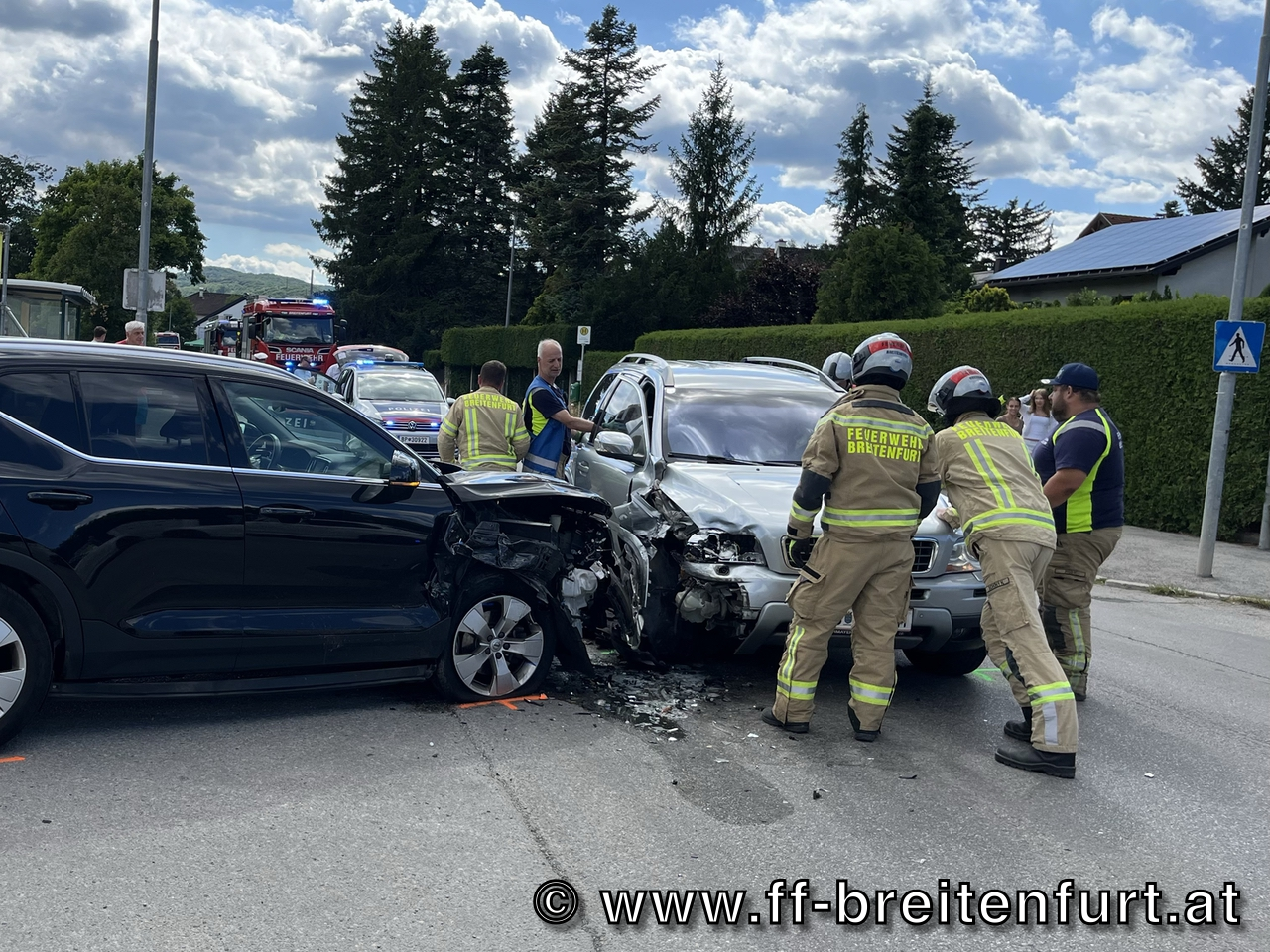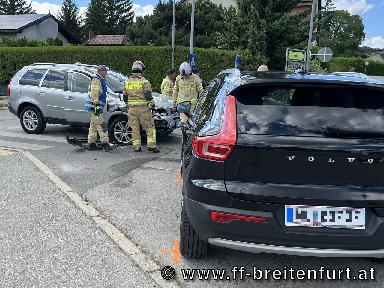 In Folge eines Verkehrsunfalls kam ein PKW fahruntauglich im Kreuzungsbereich zum Stillstand. Polizei und Rettung waren bereits an der Einsatzstelle. Die Polizei übernahm die Absicherung, während sich der Rettungsdienst um die Erstversorgung der beteiligten Personen kümmerte.