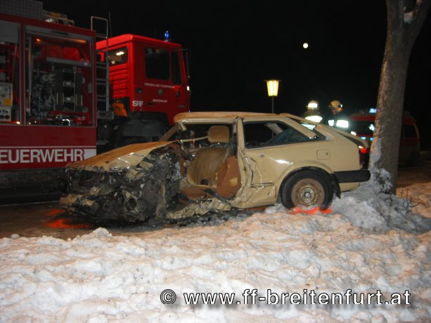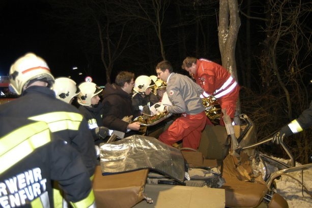 Nach absichern der Unfallstelle und stabilisieren des Unfallfahrzeuges wurde das im PKW befindliche Kleinkind erstversorgt und psychologisch betreut. Der Fahrer konnte sich vor unserer Ankunft selbständig aus dem Wrack befreien und wurde in weitere Folge vom Rettungsdienst versorgt. Nach kurzer Absprache mit den Sanitätern des Roten Kreuzes, wurde der Beifahrersitz sowie das Fahrzeugdach entfernt um eine möglichst große Versorgungs- und Rettungsöffnung zu schaffen. Das kleine Mädchen wurde anschließend nach einer Stabilisierung durch die Sanitäter mittels Schaufeltrage aus dem Fahrzeugwrack gerettet und zur weiteren Versorgung an den Notarzt übergeben.