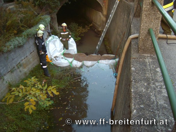 Durch Flämmarbeiten kam es im Gewölbe des Liesingbaches zum Brand verschiedener Baustoffe. Erstrangig galt es das Bachbett mit der Dammbauhilfe Moses trocken zu legen und das Wasser über die Promenadegasse per 200 m Schlauchleitung umzuleiten, um den Atemschutztrupp den Zugang zu ermöglichen.