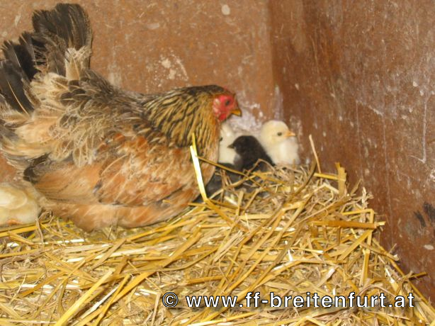 Bei dieser Kundmachung mit den Mitgliedern des Führungsstabes, HV Eisinger J. der FF Vösendorf und Bauer G. der FF Mödling, gelang es uns noch nach ca. 1. Stunde mehrere Kücken und deren Mutter vor dem Ertrinken zu retten. Diese haben nun bei einem unserer Kameraden ein neues Zuhause gefunden.
