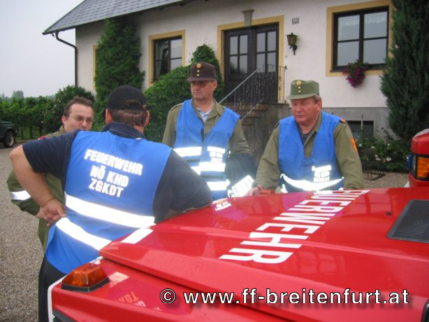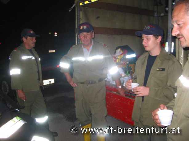 Da einige unserer Mannschaft am nächsten Tag wieder in die Arbeit mussten, wurde eine Ablöse aus Breitenfurt organisiert, welche nach kurzer Zeit mit 2 Fahrzeugen (PUMPE und LAST) im Einsatzgebiet eintraf. Das KDO 1 brachte dann die abzulösende Mannschaft zurück nach Breitenfurt.