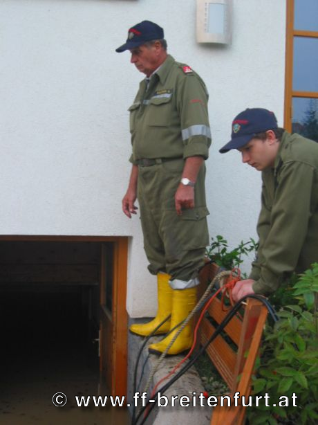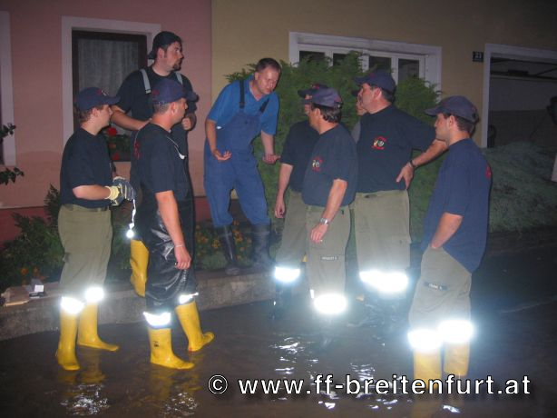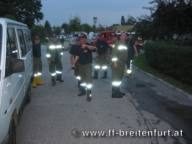 Als der Katastrophen Einsatz für die 14. Bereitschaft zu Ende war, blieb die Feuerwehr Breitenfurt mit ihrem Zug, bestehend aus FF Brunn am Gebirge, FF Hinterbrühl, FF Maria Enzersdorf und FF Perchtoldsdorf, bis um 7:00 des nächsten Tages. Auch das RLF-B der FF Gaaden blieb, um unseren Zug mit ihrem Stromerzeuger und ihrer Unterwasserpumpe zu unterstützen.
