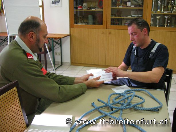 Seitens der Feuerwehr Breitenfurt wurde ein Atemschutztrupp gestellt, der sich in den vorhergehenden Wochen dementsprechend auf die NASÜ vorbereitete. Auf der Hindernisbahn übte man die Rettung einer verletzten Person und das Bergen von Gasflaschen - in weiteren theoretischen Schulungen wurden neben diverser Gefahren und Schwierigkeiten beim Atemschutzeinsatz auch die Knotenkunde wiederholt.