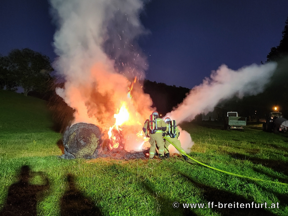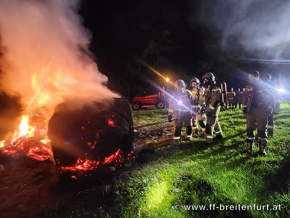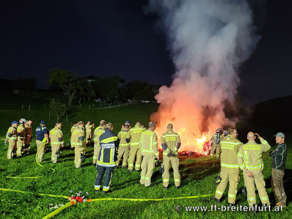 Heute führte die Freiwillige Feuerwehr Breitenfurt eine praxisorientierte Übung zum Thema „Löschen von Heuballenbränden“ durch.