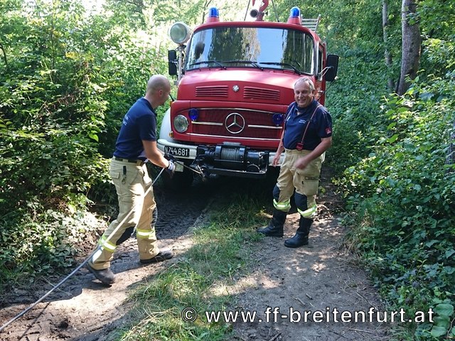 RÜST wurde das Fahrzueg wieder zurück auf den Forstweg gezogen und konnte danach die Fahrt wieder fortsetzen.